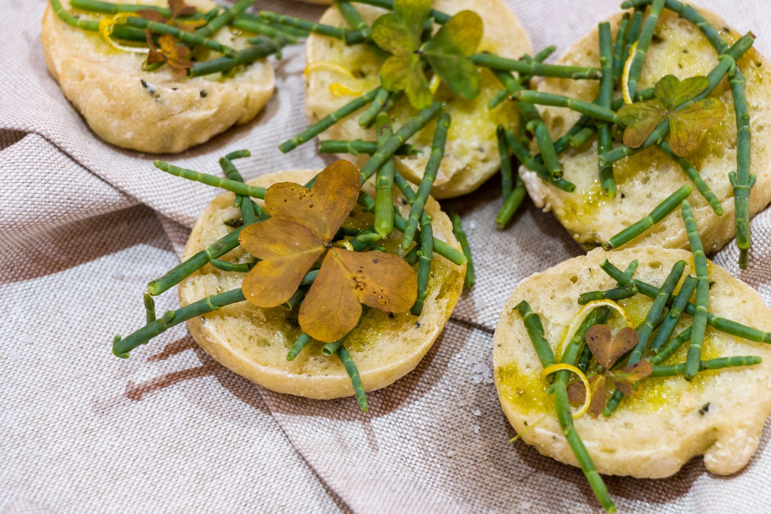Hosted in Domaine de Boisbuchet by The Gramounce, Landscape Cooking is a workshop exploring practices and ideas of cooking, fermenting, and transforming food in renewed attunement with our surroundings. What forms of practical, poetical and spiritual connection can we develop with weather events and ecosystemic relationships by focusing on foraging, eating and digesting food? What embodied processes could deconstruct the cultural distinction between the ecosystems we are part of and those that are part of us? Artist Inês Coelho da Silva and I hosted a space for co-creation and peer-to-peer exchange where artists, chefs, and designers could explore the edible landscapes they inhabit. Solar-oven cooking, ethical foraging, plant-based dyes made with river water, and cooking over embers or in an earth oven were among the various practices and techniques we used to, in the words of Irit Rogoff, “become research”. Poetically guided by the four elements (air, water, fire and soil), we developed dreamy guided meditations, embodied exercises, lectures, storytelling circles and bedtime stories. The workshop concluded with the display of several experiments on a hand-stitched picnic blanket. Composed of local seasonal ingredients, the serving included four types of ‘landscape’ cold teas, grape leaf and vine infused milk (with a paring of soapwort foam), bread cutlery sculptures, Persian pebble bread, fig leaves butter, wild angelica polenta cake, ‘friendship pesto’ (nettle and plantago with pistachio), magical starlight salt, leaks cooked on open fire, a refreshing lavender hydrosol (or, as we called it, hydro-soil), vegan dandelion honey and dandelion root coffee. Participants also displayed recipes, ideas, and foraging notes in notebooks, the covers of which were portable textile tablecloths dyed with foraged plants.