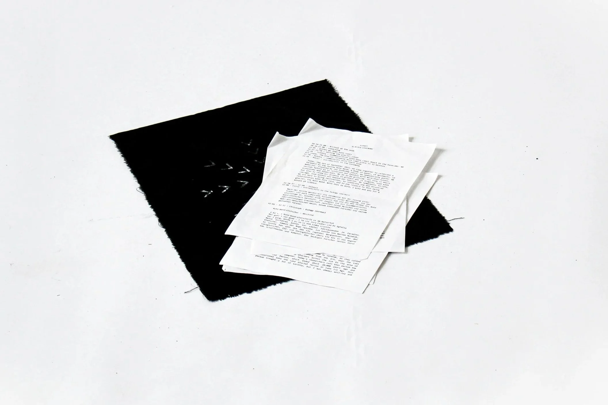 The exhibition originates from the project ICE * In Case of Emergency (2023), which explored the disappearance of European glaciers and associated folklore. In it, Sympoietic Society travelled to Sideby (FI) to research glacial land uplifting processes, Val Camonica (IT) to connect with ancestral stories by the Adamello glacier, and finally to the Austrian Alps to commemorate the late Rote Wand glacier. The project concluded with a farewell ceremony not for a dead landscape, but for one melting into transformation. Since then, the collective has grieved for these fellow bodies of water and cultivated practices of collective mourning in the form of site-sensitive workshops, performances, storytelling sessions, and walking practices.